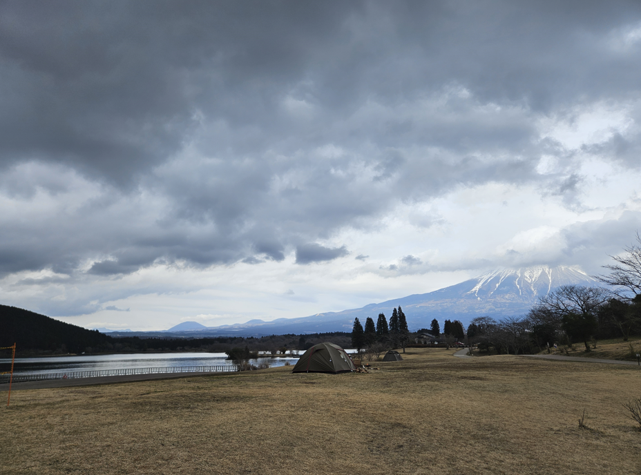 3시간 전에 스타벅스에서 바라봤던 후지산과 대비했을 땐 정상에 구름이 좀 더 낀 것처럼 보였습니다. 기대했던 풍경은 아니라서 조금 아쉬웠지만, 후지산이 좀 더 가까이서 크게 보인다는 점, 호수를 낀 풍경과 후지산 풍경 반대편으로 보이는 겹겹이 쌓인 산의 모습이 너무도 멋있어서 마음을 달랠 수 있었습니다. 캠핑장이다 보니 실제로 캠핑하는 분들이 몇 분 계셨는데 공기도, 풍경도 좋은 이곳에서 하는 게 조금 부러웠습니다. 아, 여기서 셀카봉과 삼각대가 모두 박살나는 슬픈 일이 있어서, 인물 사진은 많이 못 찍은 게 아쉽습니다. 그리고, 이동이 생각보다 지쳤는지 타누키 호수를 대표하는 사진 스폿에 가서 사진 찍을 생각이 안 났던 것도 아쉽습니다. 혹시나 가실 분이 계시다면, 더 좋은 날씨에, 더 좋은 포인트에서 인생샷 건지시길 바라겠습니다. 또한, 타누키 호수 근처에는 '큐카무라 후지'라는 호텔이 있는데 여기선 타누키 호수 + 후지산 뷰를 보며 휴식할 수 있다고 하니 여행에 참고하시면 되겠습니다. 저희도 처음에는 여기서의 숙박을 고려했었는데, 동선을 고려해서 숙박은 다른 료칸에서 하였습니다.