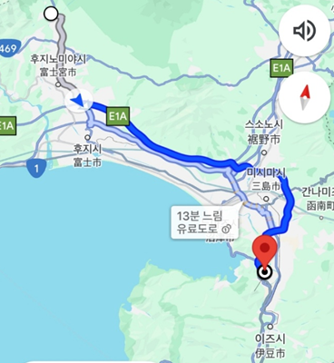 시라이토 폭포에서 다시 왔던 길을 따라 내려가고, 신 토메이 고속도로를 타고 이즈 반도 쪽에 있는 숙소로 향하기로 했습니다. 이 숙소의 체크인 마감 시간이 18:00이어서 마음이 조금 급했습니다. 여기에 생각보다 운전을 많이 해서 조금 피곤하기도 했고, 가는 길 대부분이 2차로에 차가 막혀서 지치기도 해서 빨리 도착하고 싶은 마음으로 가득했습니다.