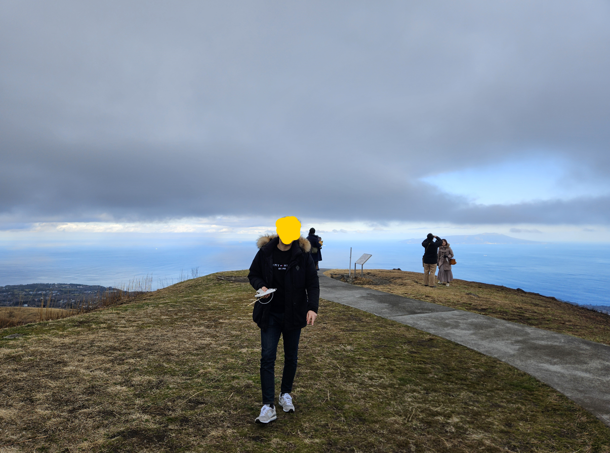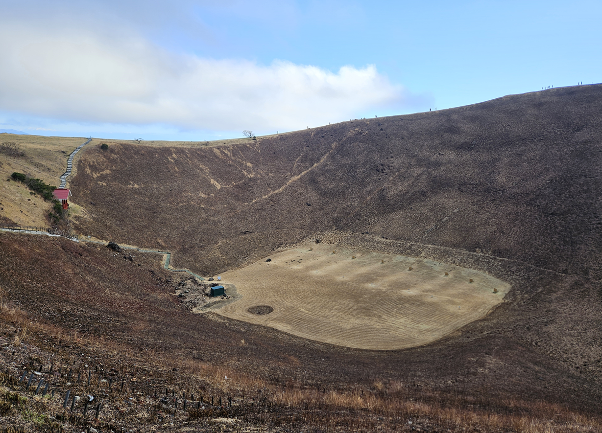 국가 천연기념물인 오무로산은 해발 580m의 높이에 정상 중앙의 분화구가 뻥 뚫린 상태로 남은 지형이 특징인데요. 리프트를 타고 올라오면 이 분화구 주변의 산책로를 한 바퀴 돌면서 풍경을 감상할 수 있습니다.