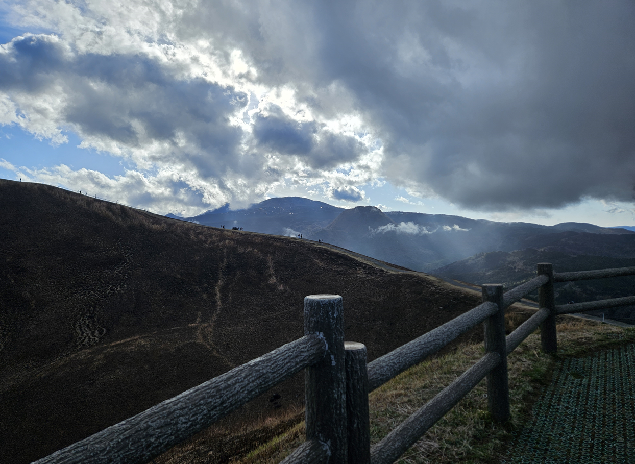 내려가다 보면 오무로산이 나오는데, 사진에서 봤던 것과 다르 게 겨울이라 오무로산이 황토색이었습니다.