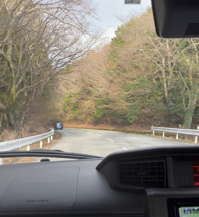 자동차뿐 아니라 바이크를 탄 사람들도 간간히 보였는데요. 이렇게 편할 줄 알았으면 오무로산을 갈 때도 이 길을 이용했을 텐데 아쉽습니다. 길은 내리막길과 커브로 구성되어 있었는데, 틈틈이 엔진브레이크를 걸면서 운행하면 위험할 일이 없는 도로입니다.