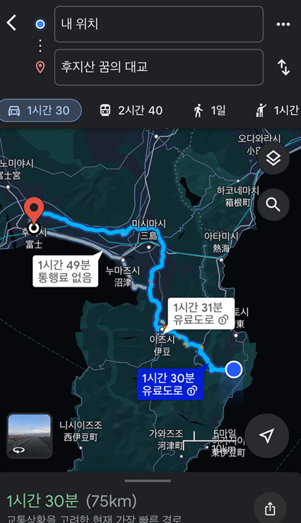 안녕하세요. 시즈오카 후지산 렌터카 여행 7탄입니다. 오무로산을 둘러 본 뒤 다시 시즈오카쪽으로 넘어가려고 했던 게 원래 계획이었는데, 더 길게 운전할 자신이 없어서 계획을 바꾸어 후지시 근처에서 1박을 하기로 했습니다.
