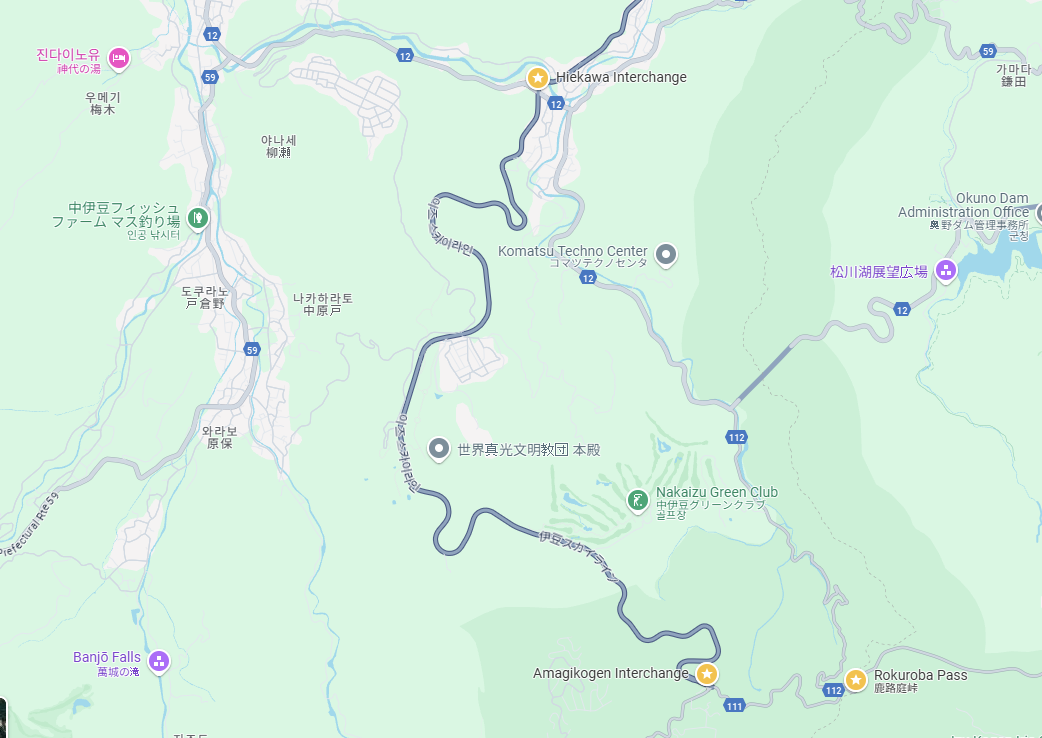 오무로산으로 운전해 가는 길이 너무도 힘들었기 때문에, 돌아가는 길도 조금 걱정이 되었는데, 다행히도 이번에는 내비게이션이 '이즈 스카이 라인'이라는 도로의 일부로 안내했습니다.