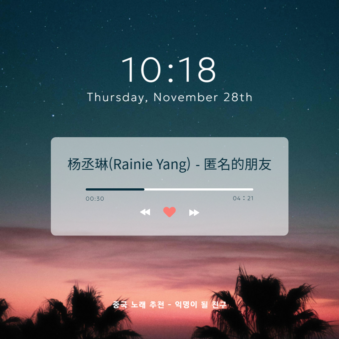 안녕하세요. 오늘은 애절한 중국 노래를 추천해 드리려고 합니다.