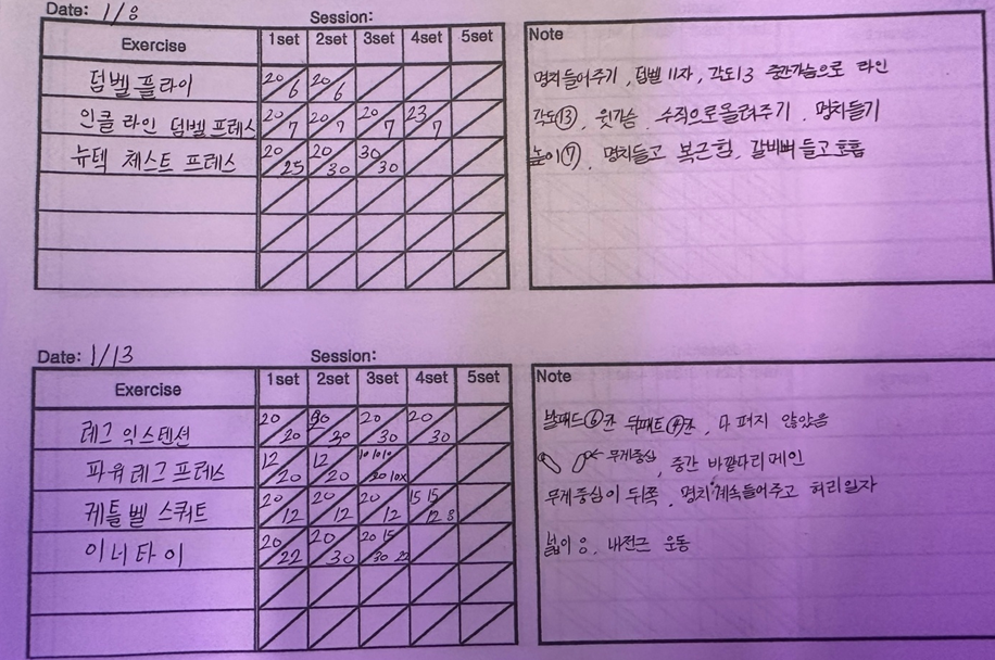 올해부터는 PT를 받을 때 무게를 이전보다 더 늘리는 방식으로 요청드렸다.